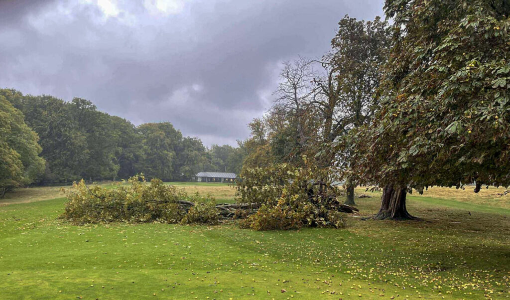 På grund af dårtligt vejr var det nødvendigt at lukke golfbanen hele lørdag. Flere træer væltede i uvejret, ligesom det gik hårdt ud over stakittet