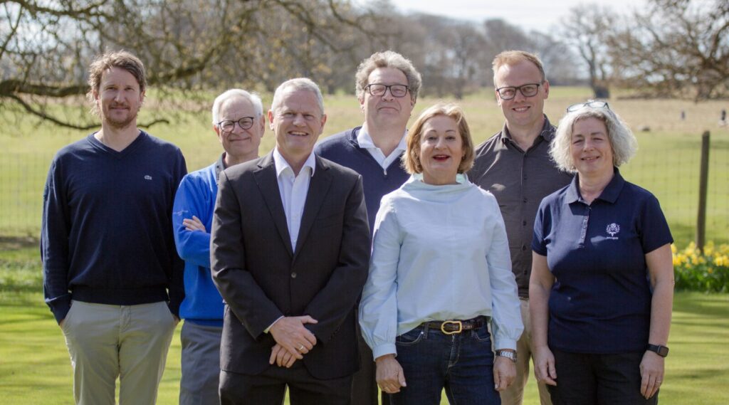 Den siddende bestyrelse består af (set fra venstre) Jacob Schou, Peter Huntley, Christian Rosenstand (næstformand), Jens Peter Sørensen (kasserer), Birgitte Henrichsen (formand), Frederik Arnesen og